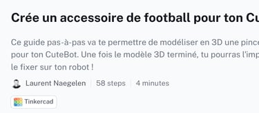 Basée sur notre programme pilote à l'école élémentaire de Bourgfelden dans le Haut-Rhin, nous vous proposons une progression pour une séquence STIM de 6 séances - soit une dizaine d'heures - qui mêle programmation et design 3D.